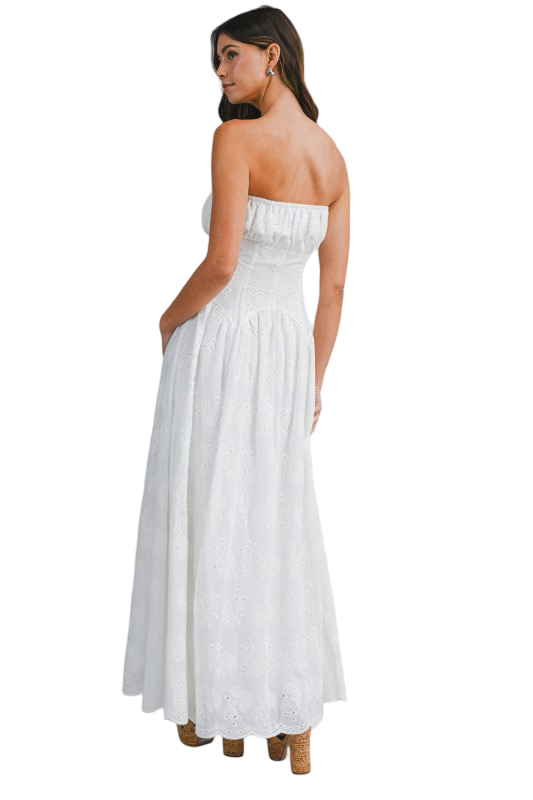 Apparel- Mable Eyelet Strapless Bow Front Maxi Dress