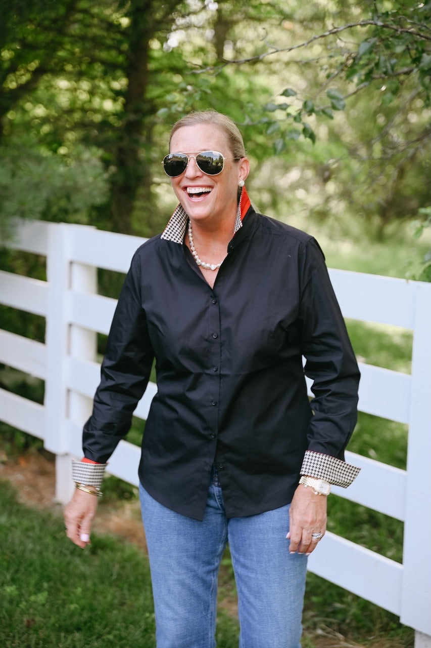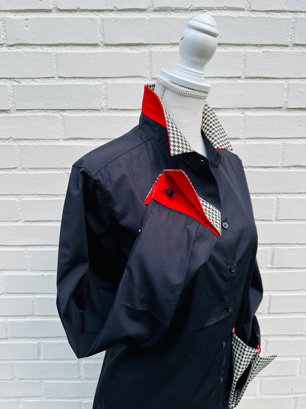 Apparel- Pearly Vines- Diana French Cuff Black w Red &Houndstooth Ribbon