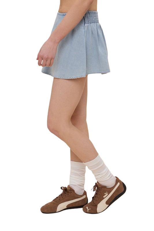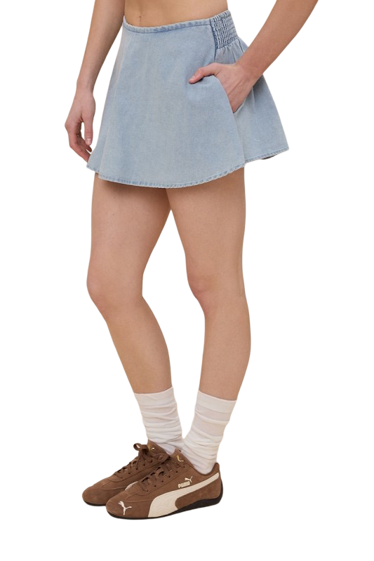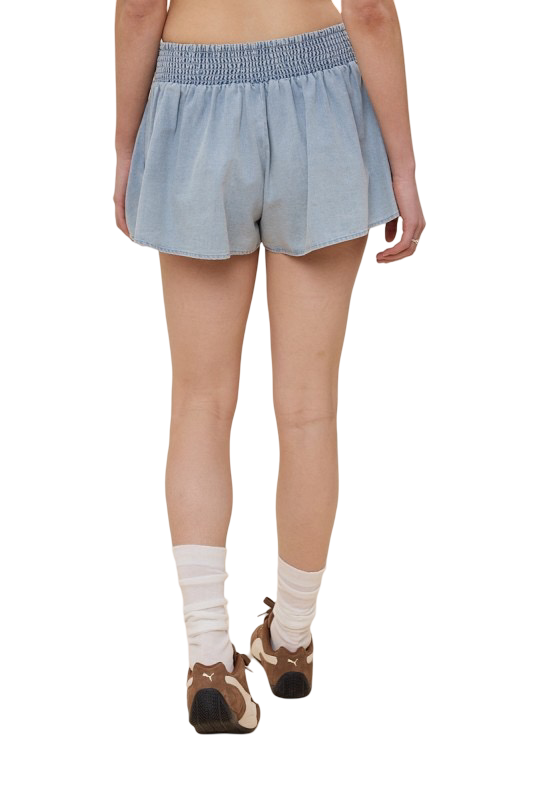 Apparel- Sky to Moon Denim Smocked Flare Mini Skirt Skort
