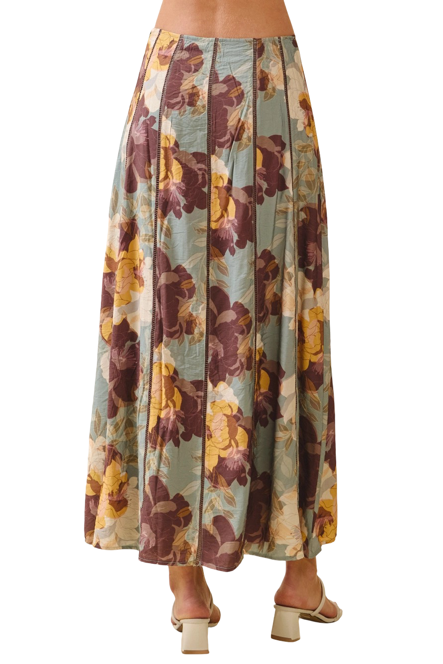 Apparel- TCEC Floral Contrast Stitch Detail Midi Skirt