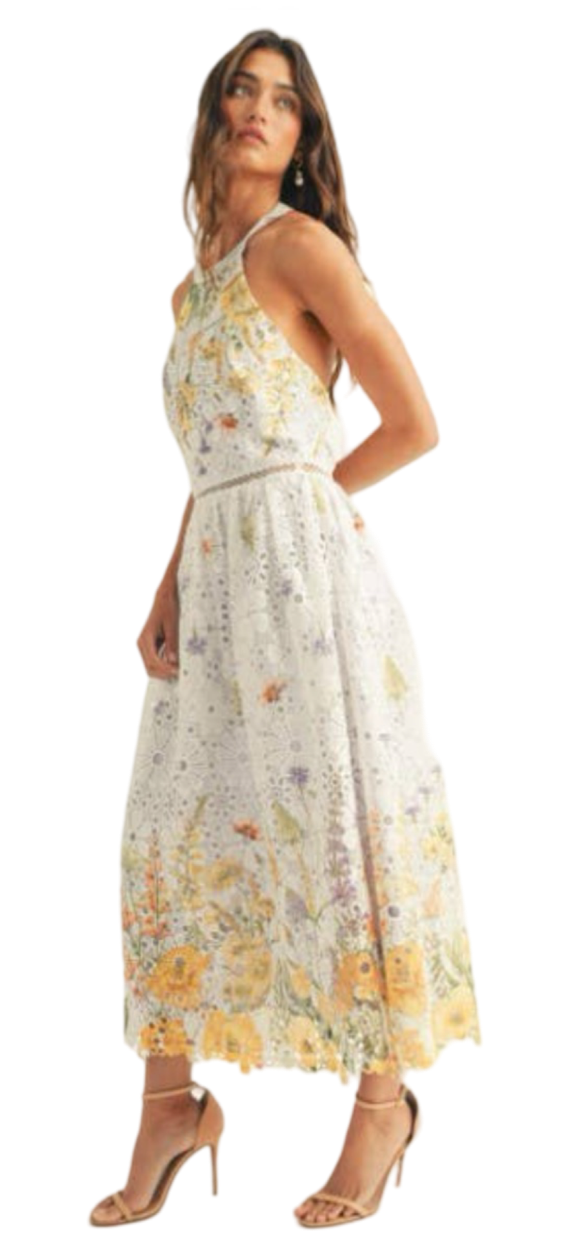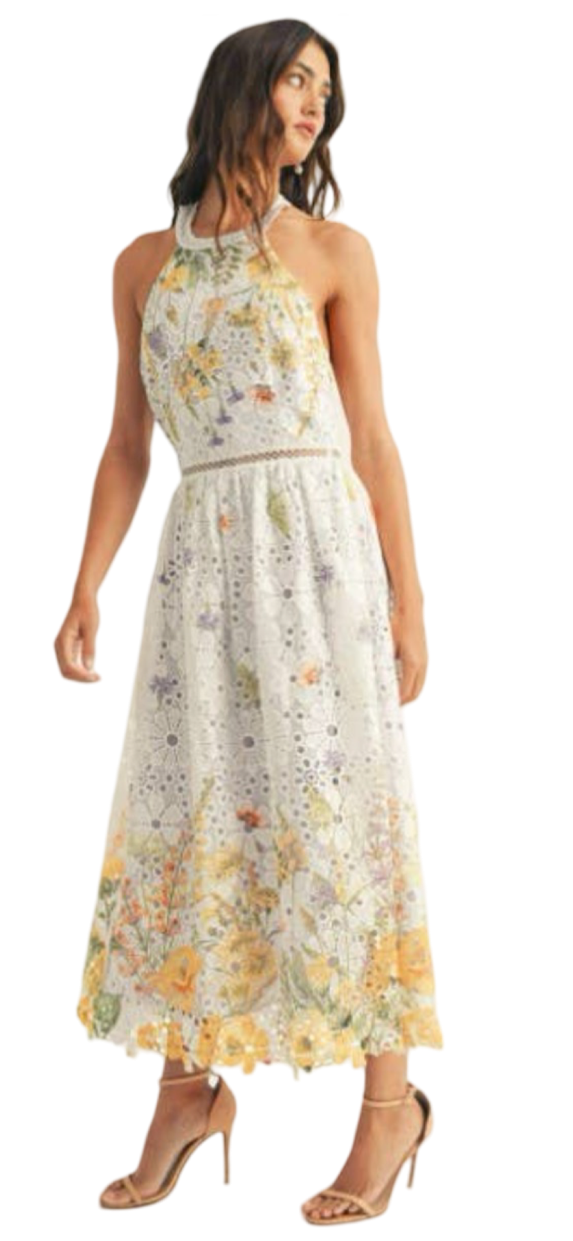 Apparel- Just Me Halter Neck Floral Border Print Midi Dress