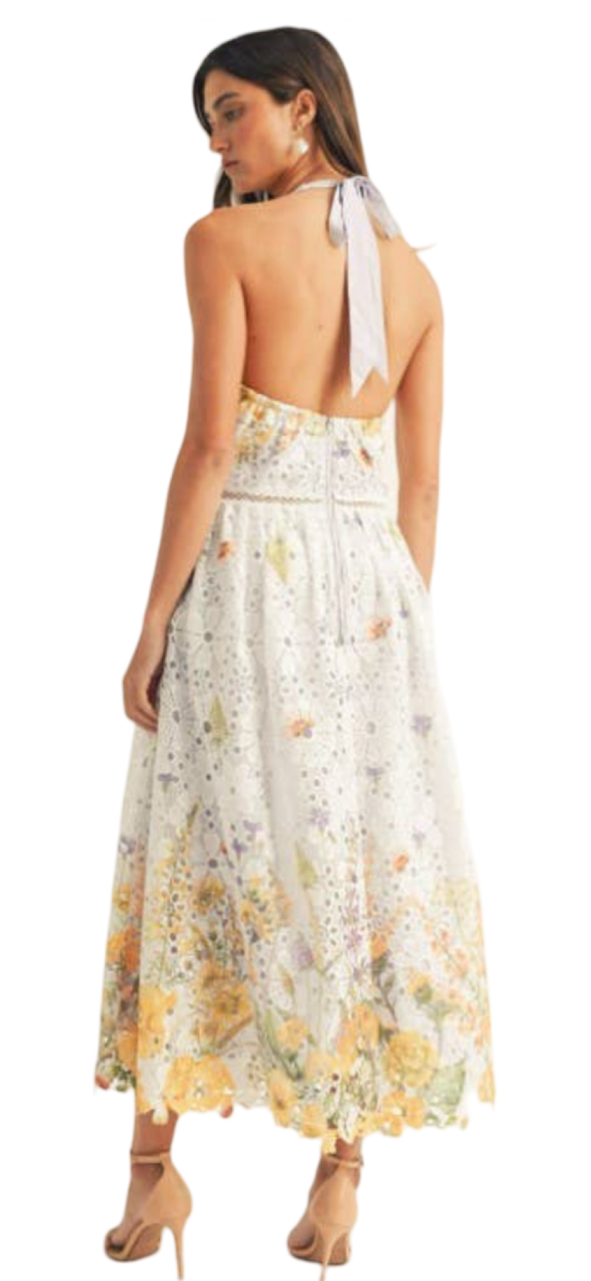 A perfect blend of bold patterns and feminine charm, our Halter Neck Floral Border Print Midi Dress is your go-to for a standout look. Halter Neckline – A flattering design that shows off your shoulders and gives a sleek, elegant feel. Floral Border Print – A stunning floral pattern along the hem that adds a vibrant and fresh touch. Midi Length – A versatile, flattering silhouette that works for everything from brunch to evening events. Figure-Flattering Fit – Gently cinches at the waist for a lovely, defined shape. Lightweight, Flowing Fabric – Perfect for staying comfortable and stylish all day. Pair with strappy sandals and minimal jewelry for a fresh, effortless vibe!