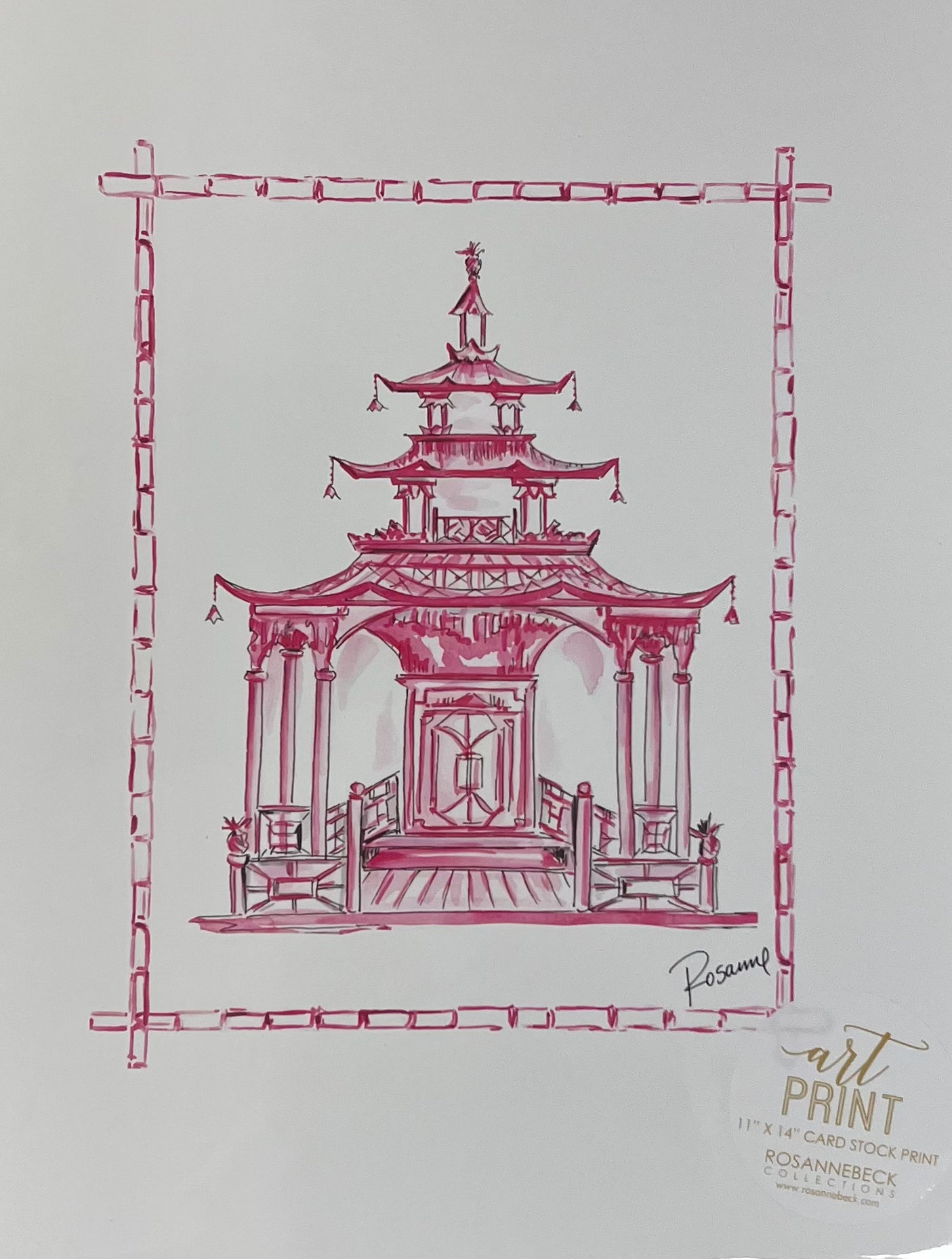 Home- Rosanne Beck Collections Art Print 11x14- Hand Painted Ornate Pagoda Pink