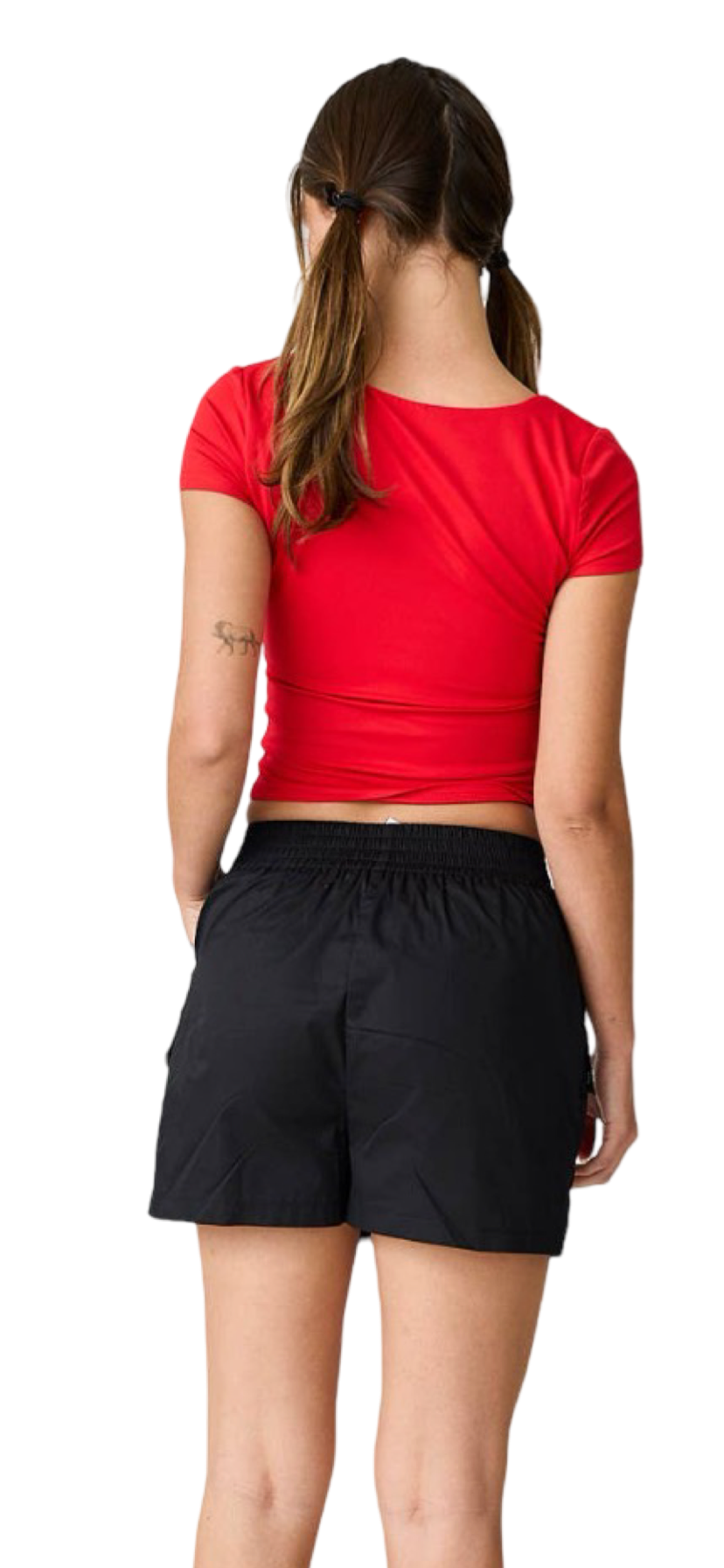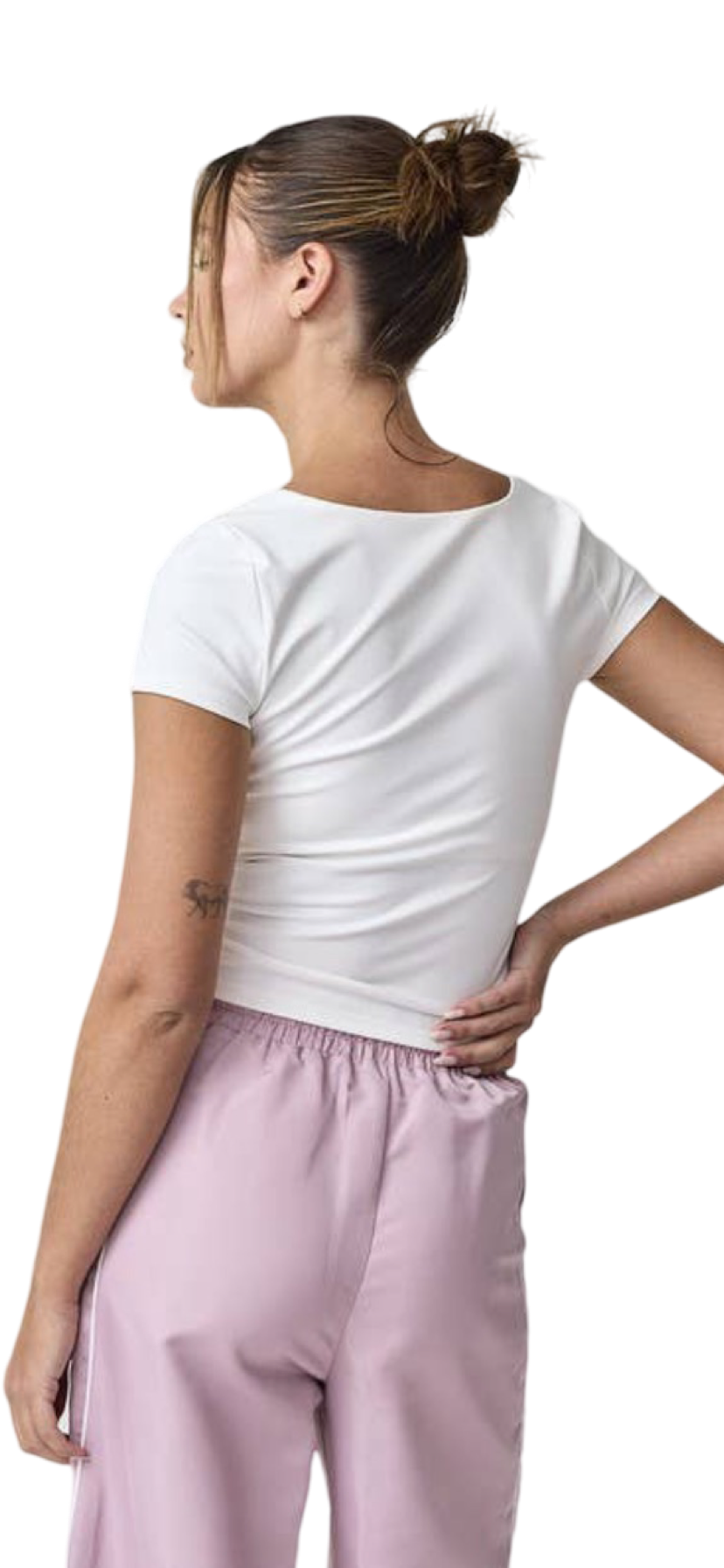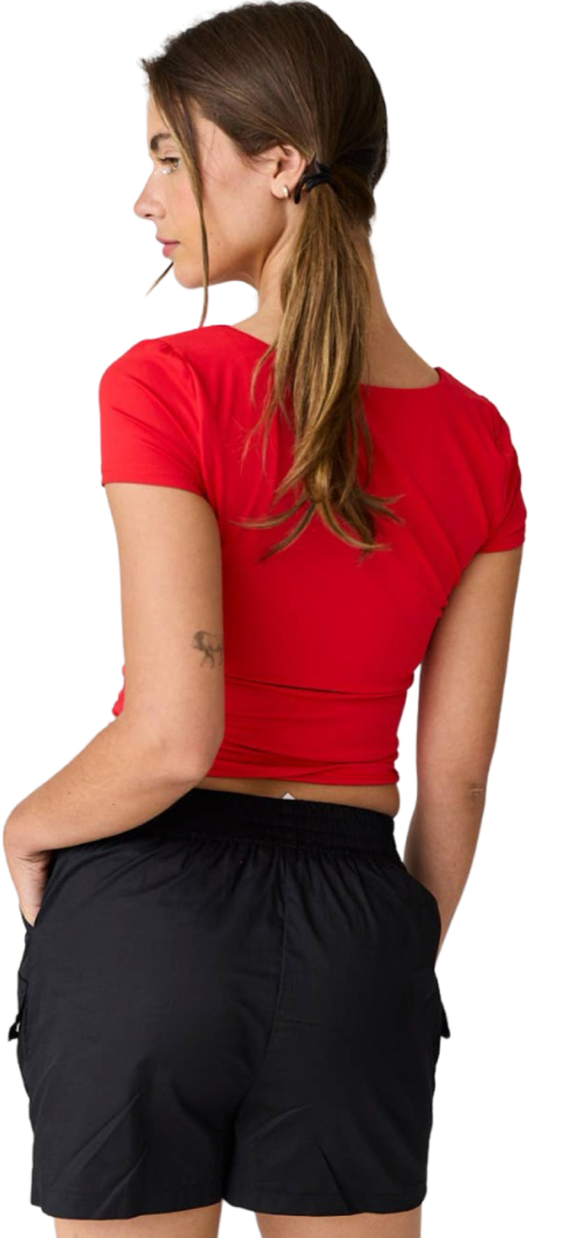 Nova Slim Fit Square Neck Top -Slim Fit -Square Neck Top LENGTH 18 1/4 CHEST 14 1/4 SLEEVE 5 3/8 Model's height is 5' 8" and wearing a size S 75%Polyamide, 25%Spandex