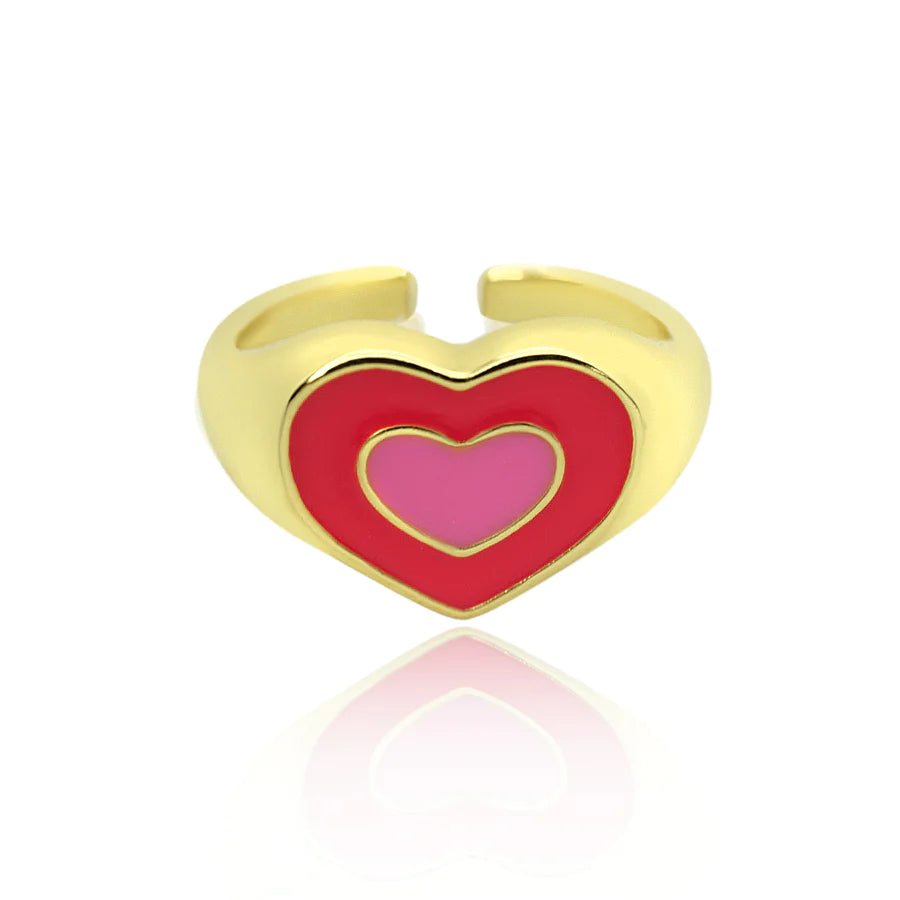 14K gold plates heart shaped rings with enamel coloring in multiple color variations! Easy to stack with rings or wear solo!!