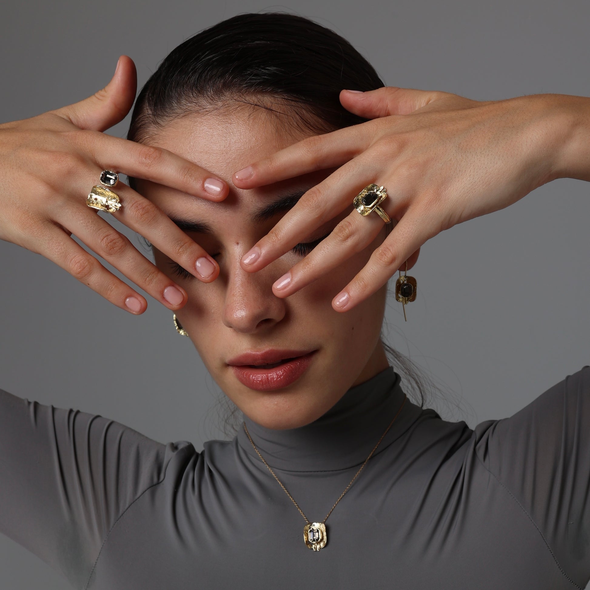 "Add some Greek flair to your jewelry collection with our Kalliope Aurora Simple Bronze Crystal Ring. This one-of-a-kind ring was handcrafted in Greece for a classy and unique touch. Bring a touch of Greece to your style with this beautiful crystal ring."