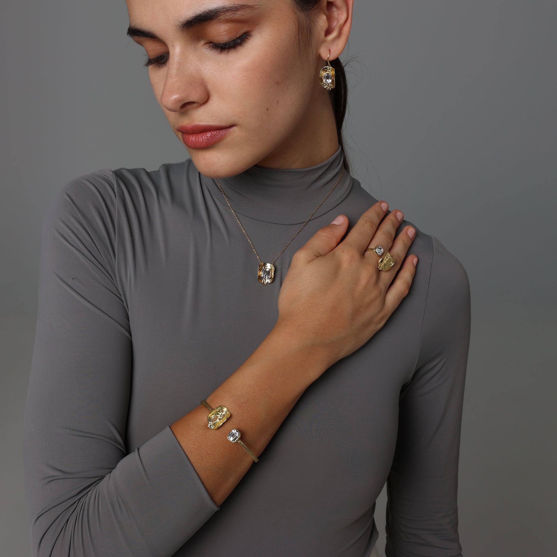 - Material: Crafted from high-quality bronze, known for its durability and luxurious feel, adorned with a central crystal.
