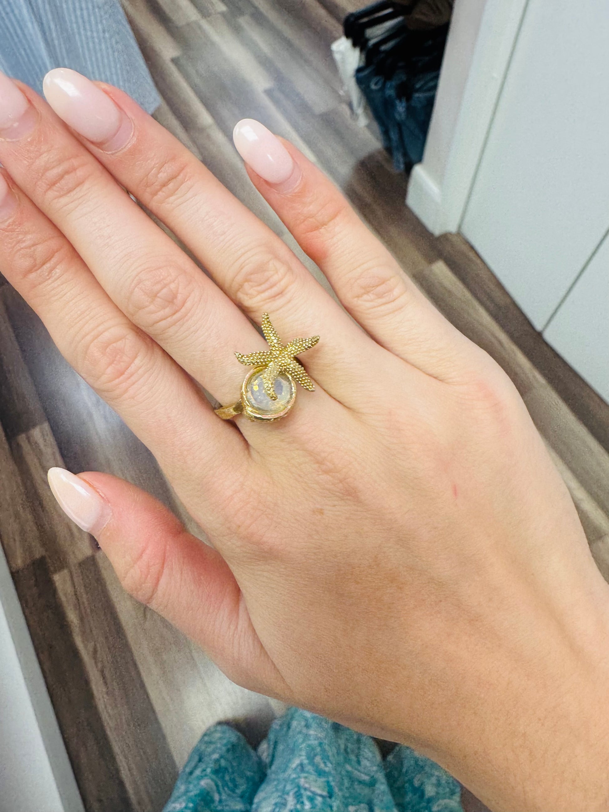 Rings- Kalliope Bronze Starfish White Opal Crystal Ring