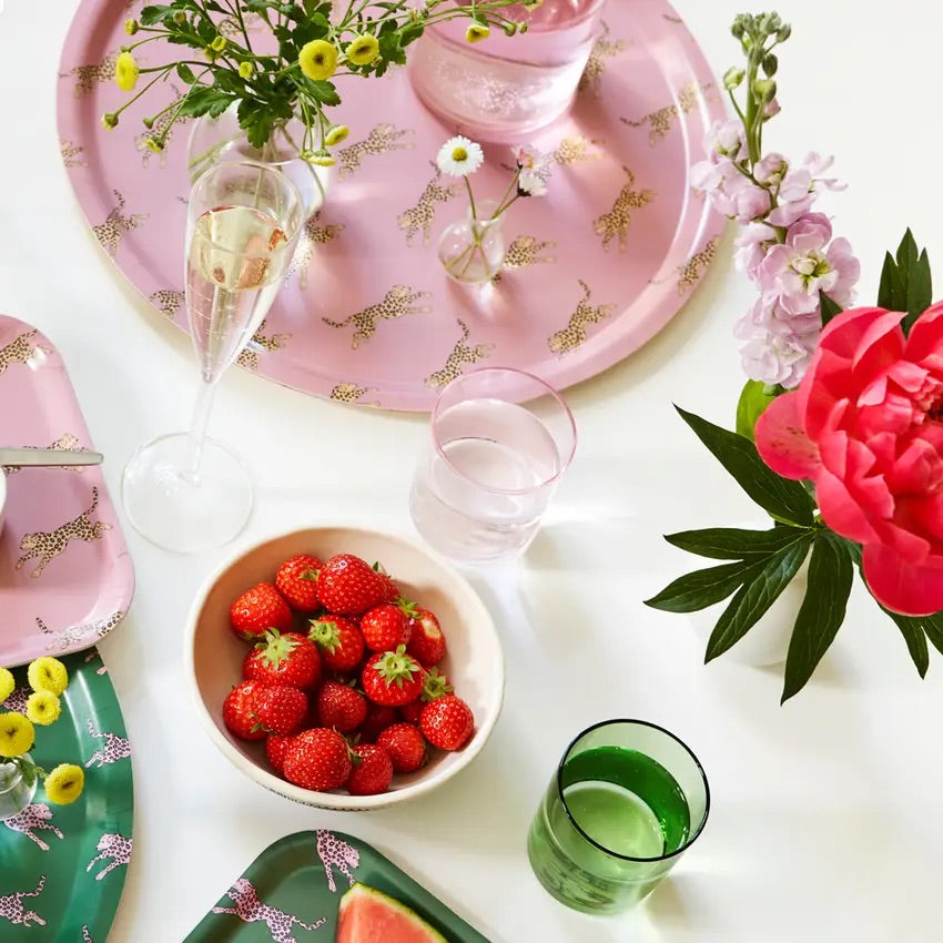 Add a pop of color to your table setting with our stylish serving tray Yellow Leopard. The serving tray, featuring a yellow leopard print on a rosewood colored background, is great for serving tea and drinks or your favorite breakfast. When not in use, it will serve as a chic accent detail propped on your kitchen counter. We have designed this serving tray for BLU KAT in collaboration with Swedish illustrator Carin Ahlberg Giddings. The serving tray is hand crafted in Sweden according to a traditional method using FSC-certified birch veneer. Every tray consists of several layers of veneer, which can be seen on the edge, the layers are glued together and then laminated for durability. The FSC® label guarantees that the wood material comes from responsibly grown forests. DETAILS SIZE: 38cm diameter MATERIAL: Laminated Birch Veneer Dishwasher safe, but we recommend hand washing. Food safe Lightweight Hand crafted in Sweden