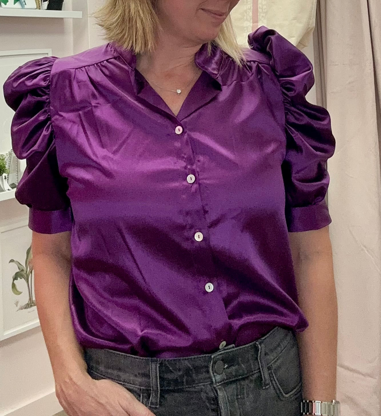 Apparel- Adrienne Puff Sleeve Button Down Blouse